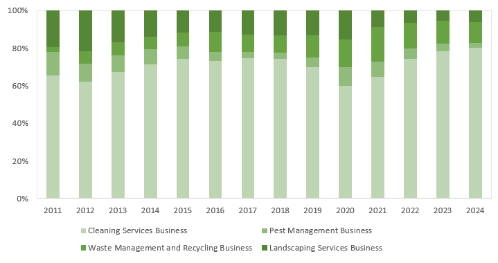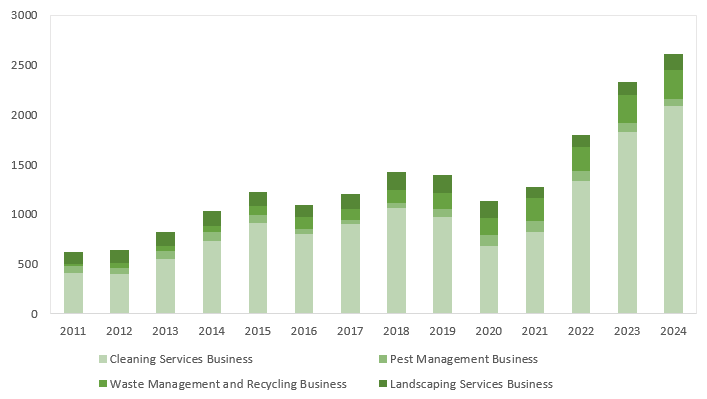 The Cleaning segment, the Group’s core business, accounts for approximately 80% of total revenue and has achieved a 13.4% CAGR from 2011 to 2024. Margin expansion has been driven by disciplined cost management, operational scale, and the successful acquisition of new government contracts. In October 2025, the Group further reinforced its market position by securing a three-year, HK$150 million marine cleaning contract covering Hong Kong’s eastern waters, including Victoria Harbour and Sai Kung. The segment continues to enhance operational efficiency and advance ESG outcomes through technology adoption and strategic integration with downstream recycling and upcycling initiatives.